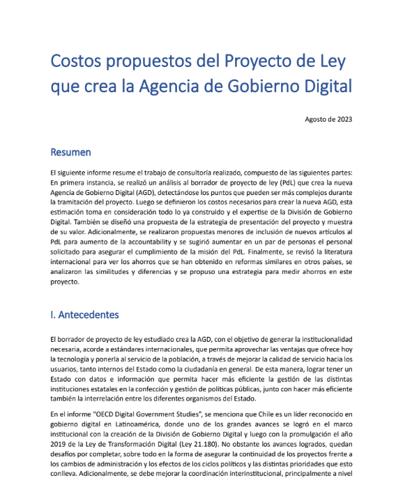 Costos propuestos del Proyecto de Ley que crea la Agencia de Gobierno Digital