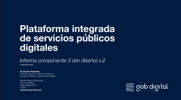 El informe se centra en el diseño de un modelo, institucionalidad y arquitectura para una Plataforma Integrada de Servicios Digitales del Estado chileno. Su objetivo principal es proponer una estrategia de alto nivel que resuelva la fragmentación actual del sistema (más de 4,000 sitios web) y mejore la experiencia ciudadana. Las recomendaciones se basan en el estudio de casos internacionales exitosos, como la agencia británica Government Digital Services (GDS) y su plataforma GOV.UK, además de ejemplos de Uruguay, Dinamarca y España