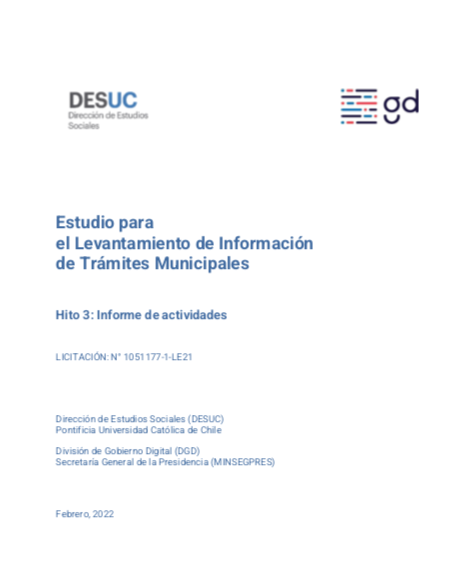 Esta publicación presenta los resultados del Estudio de levantamiento de información sobre trámites municipales (2022), cuyo objetivo es caracterizar los trámites que gestionan los municipios y su nivel de avance en digitalización. El documento busca aportar evidencia para apoyar la toma de decisiones y el diseño de políticas públicas orientadas a fortalecer la transformación digital a nivel local.